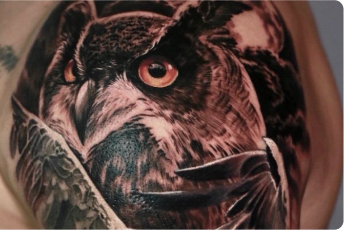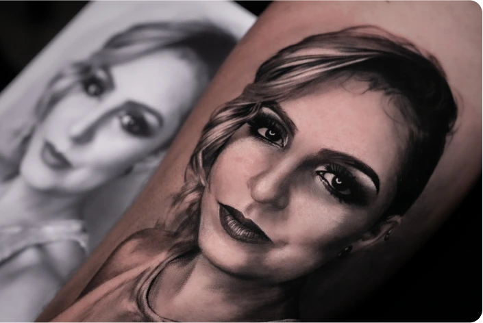 Depois de anos de prática e estudo, desenvolveu sua própria metodologia para tatuagens realistas — focada em contraste, durabilidade e acabamento..